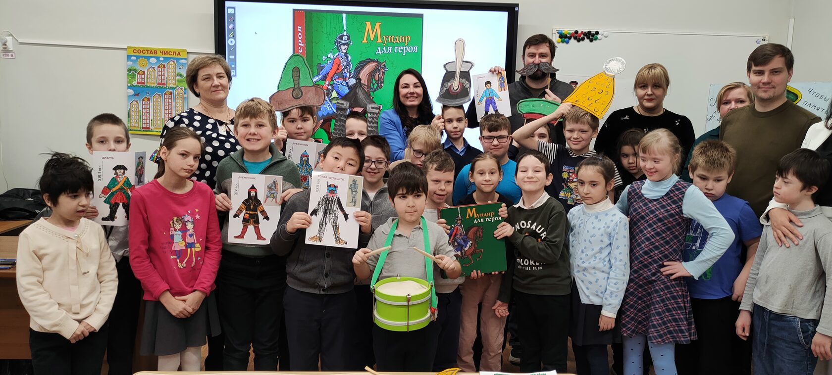 С начала ноября 2024 г. участниками проекта «Мундир для героя», реализуемого нашим Фондом при поддержке Грантов Мэра Москвы, стали уже около 200 детей с ОВЗ столицы. Мероприятия проходят в онлайн и офлайн форматах: педагоги нам присылают фото- и видеоматериалы с занятий, а некоторые школы мы посетили лично.