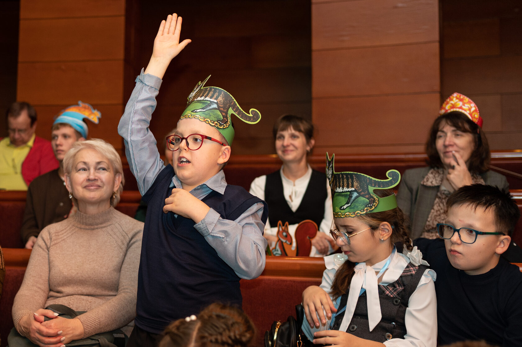 В фойе у фонтана маленьких гостей встречали удивительные фотозоны, созданные дизайнерами «Иллюстрированных книжек…»: фигуры персонажей пушкинского «Лукоморья». Ребята и взрослые могли сфотографироваться рядом с морскими витязями, царевной с волком, лешим и, конечно, возле знаменитого дуба и ученого кота!