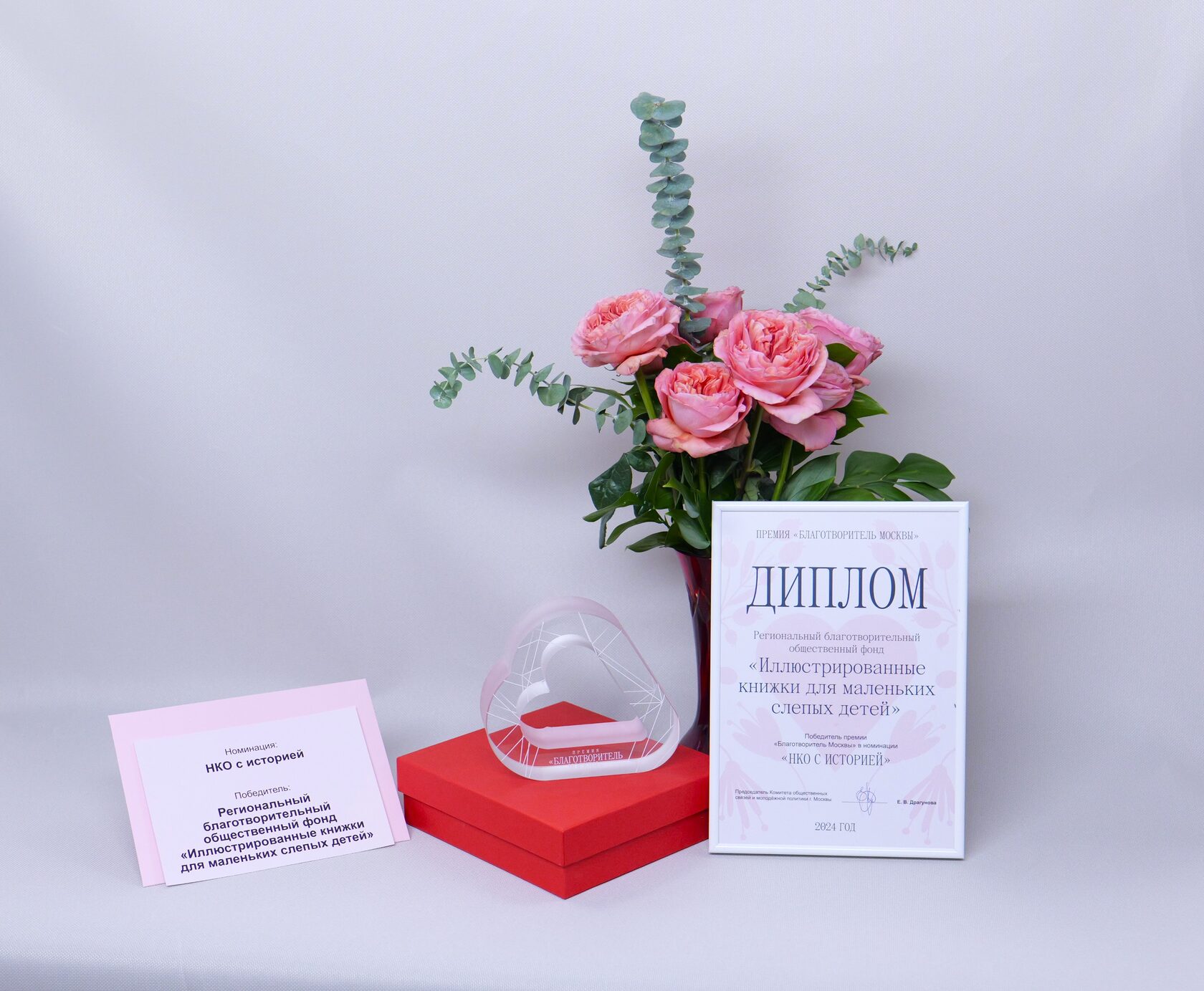Нам очень приятно, что 30-летняя работа Фонда отмечена такой символичной наградой – хрустальным сердцем! Ведь все мы действительно вкладываем сердце и душу в то, чтобы каждый особенный ребенок получал в подарок наши удивительные, созданные для него книжки!
